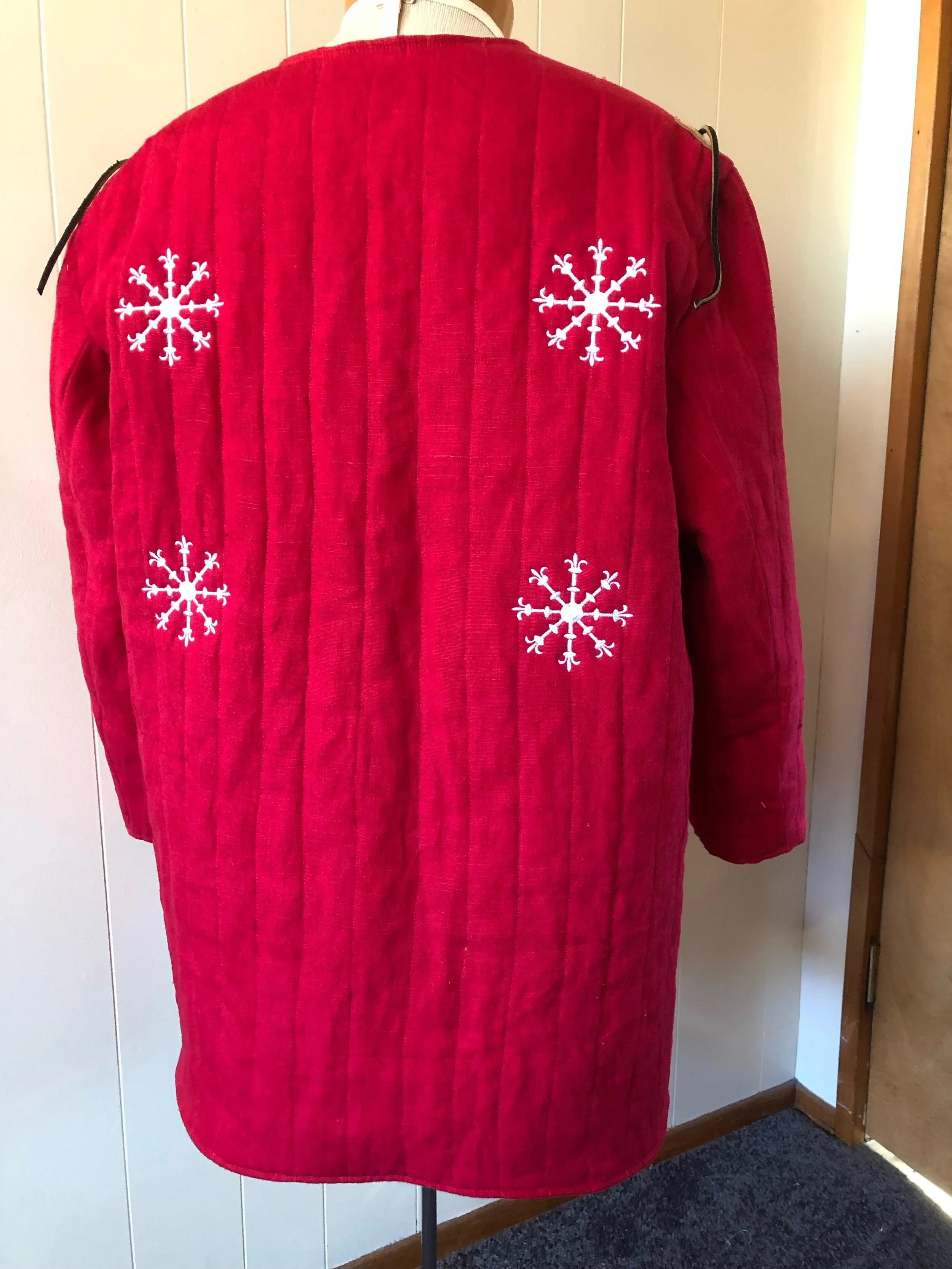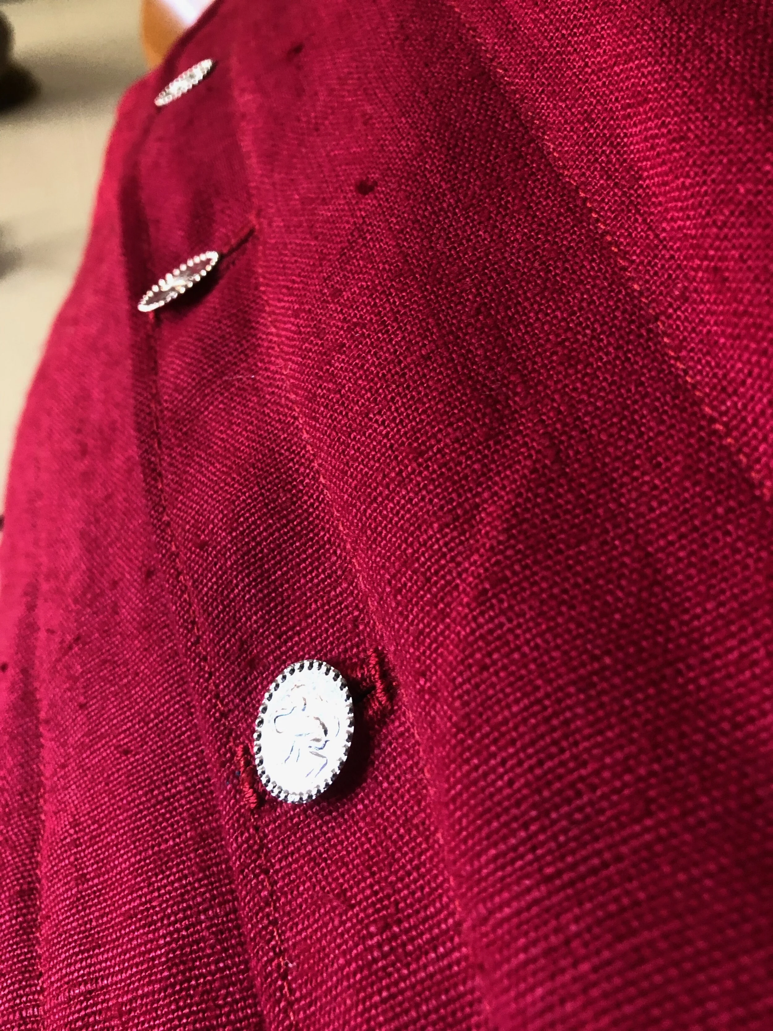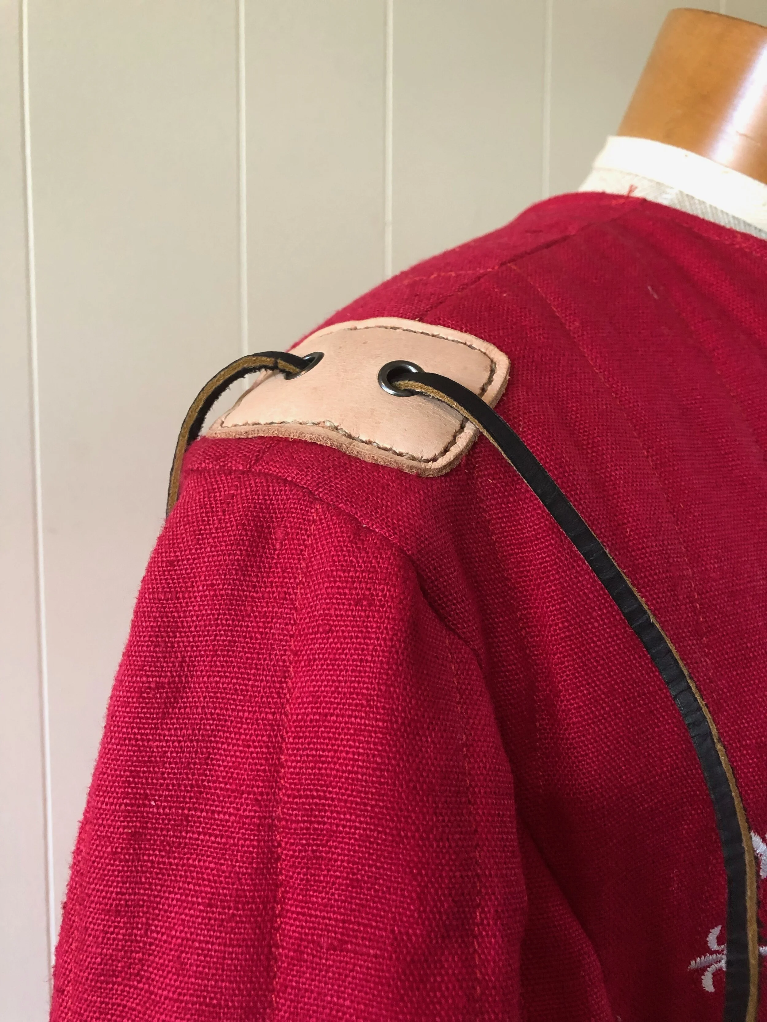 gambeson for SCA combatIt’s made with hemp lined with linen, featuring handworked buttonholes in silk.